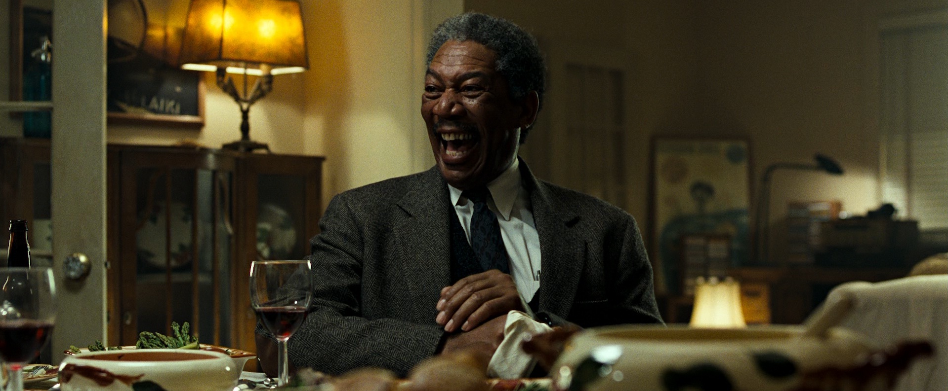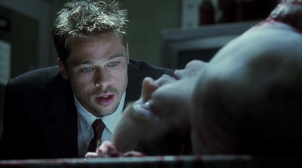 The film has only a few light moments: when the passing subway rattles the apartment, and Freeman, Pitt and Paltrow laugh uncontrollably; when Pitt uses Cliff Notes to Dante; and when Pitt pronounces de Sade as “de Sha-day”. But they are few and far between; this is a dark, dark film.